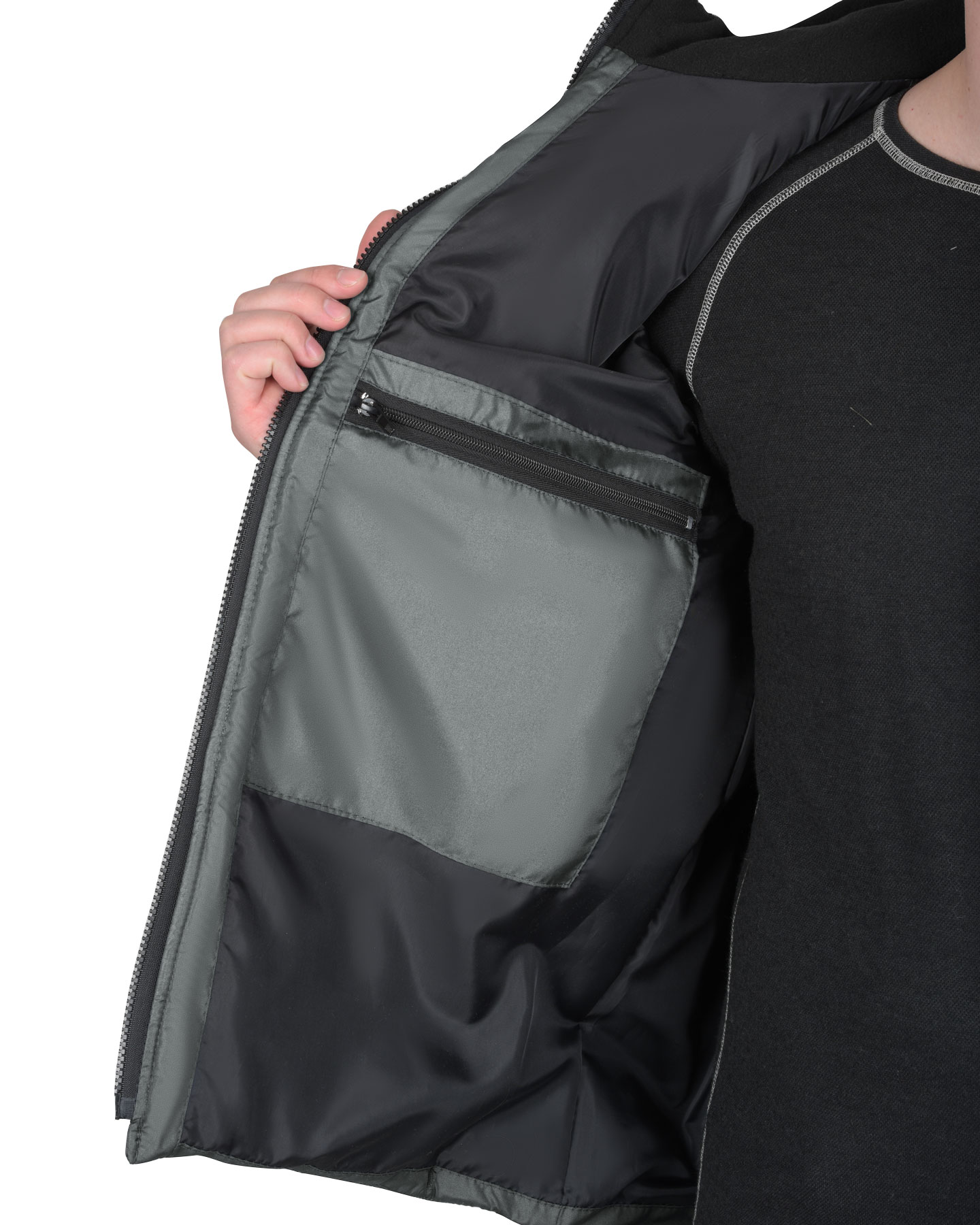 Материал подкладки капюшона: полотно флисовое, состав 100% п/э, пл. 180 г/м², цвет: чёрный.