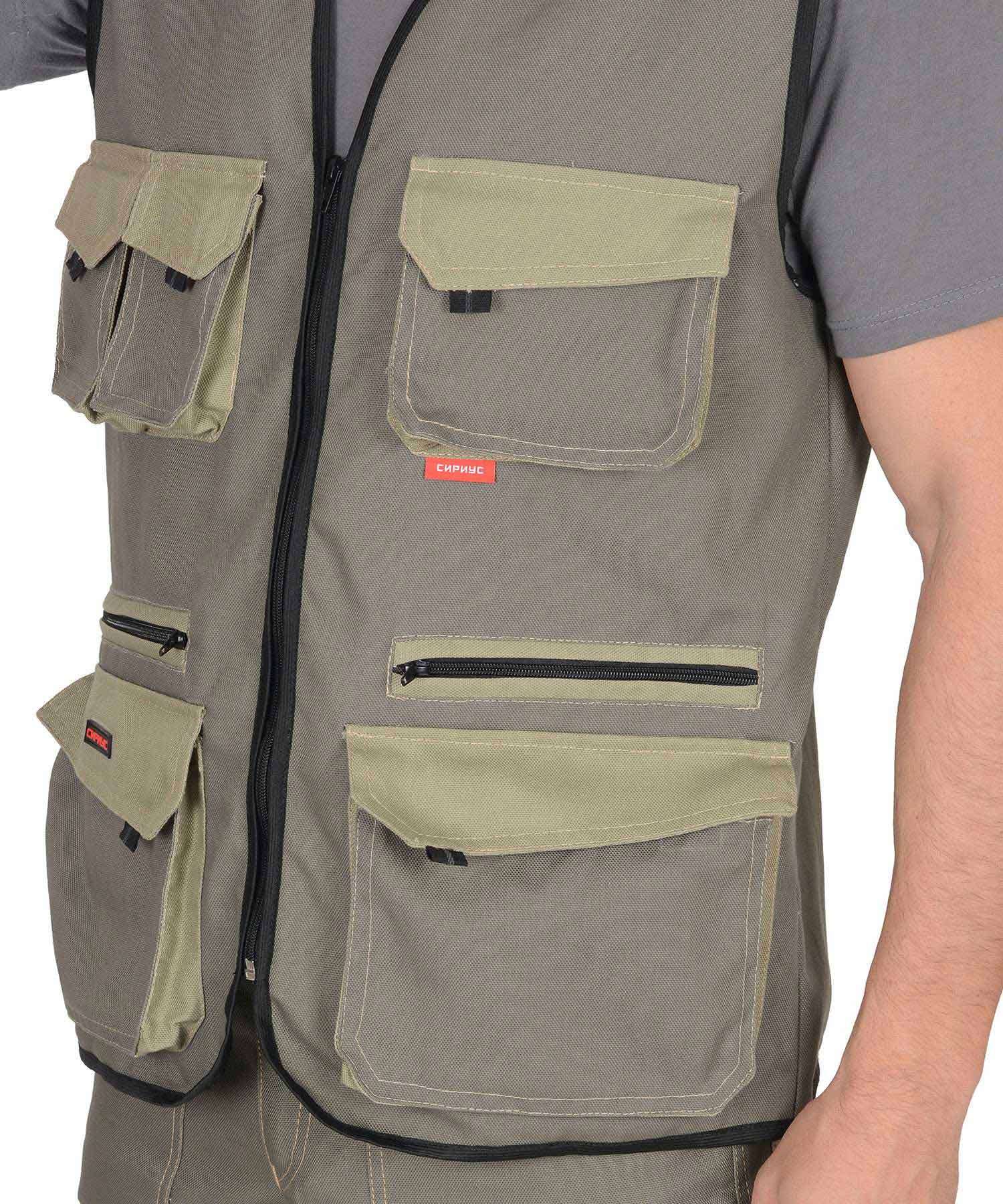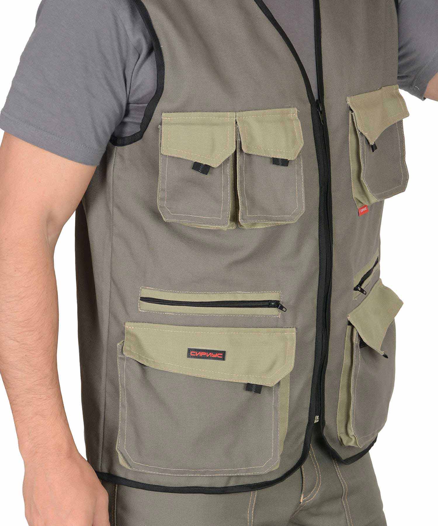Жилет "ВЕСТ-ВОРК" летний: т.оливковый со св.оливковым (ЧЗ)